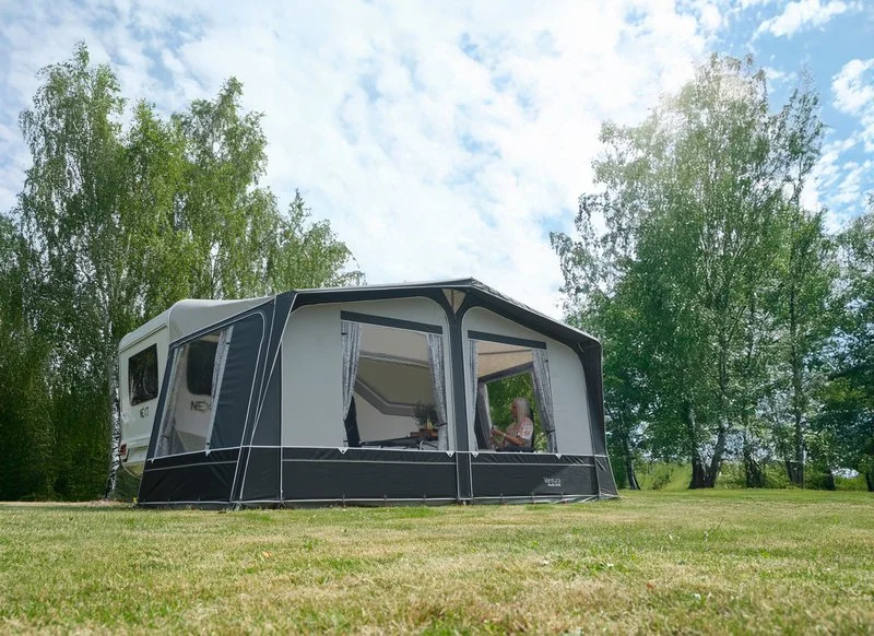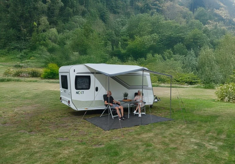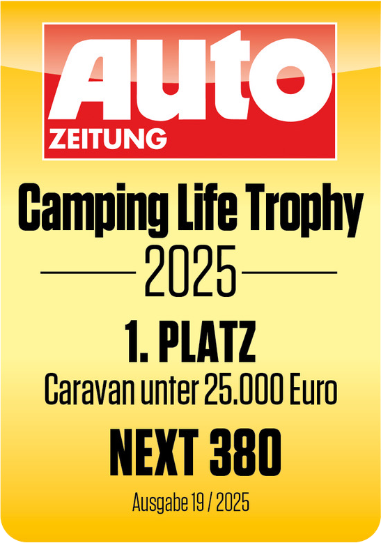NEXT 380: Kompaktowa przyczepa kempingowa dla poszukiwaczy przygód! Konstrukcja warstwowa z gładką blachą gwarantuje wysoką stabilność przy niskiej wadze. Nowoczesny materiał izolacyjny zapewnia przytulny klimat.